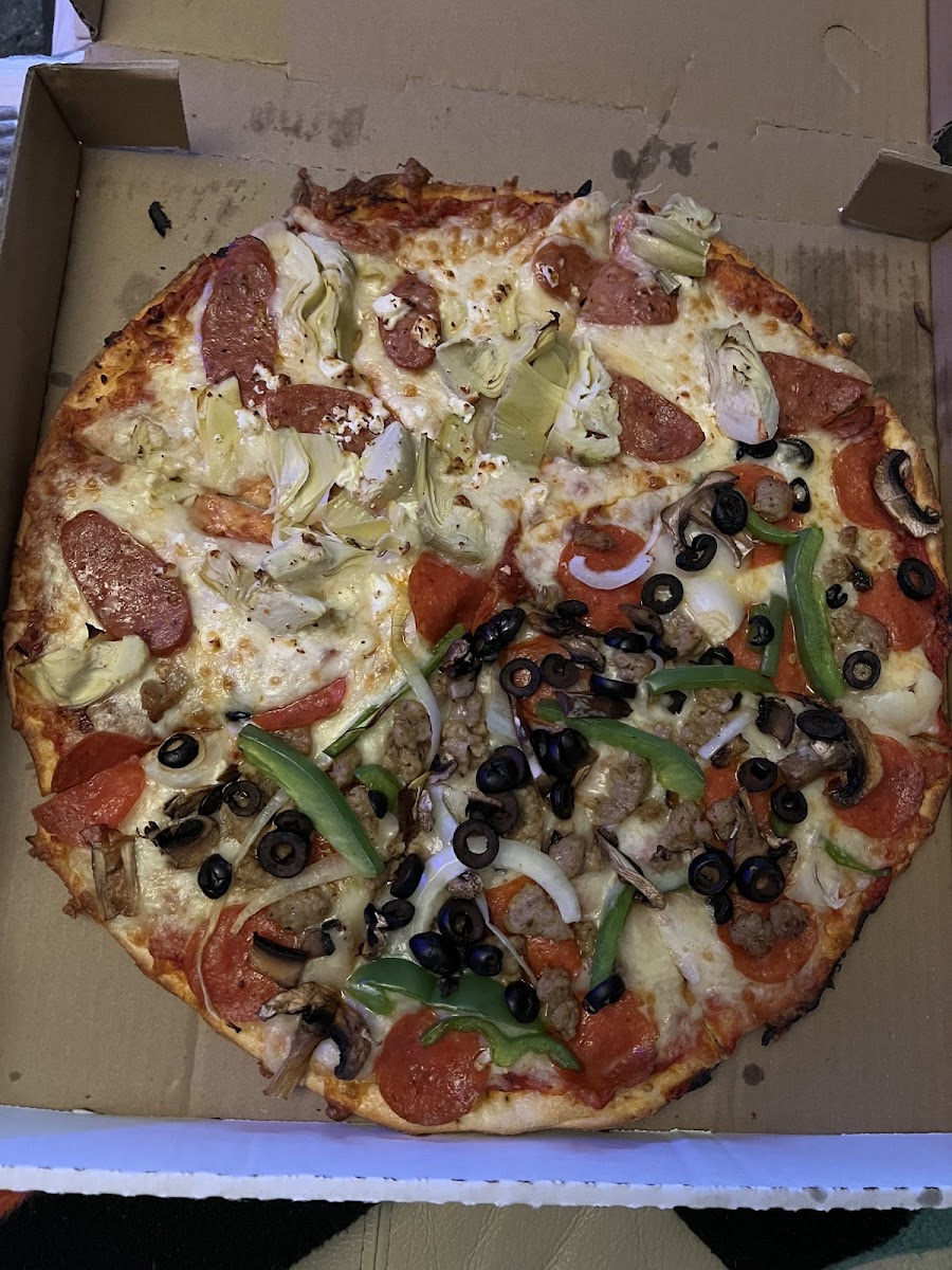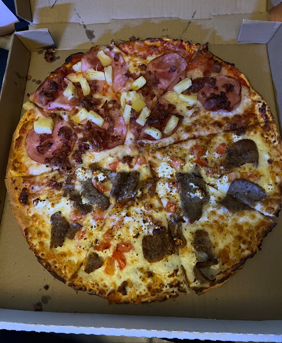 Excellent prices, delicious pizza. The young men working there are efficient and friendly. Love the Riviera pizza with Redneck Sausage slices!!, the Gyro pizza is salty but great, Americano pizza excellent classic pizza toppings, and the Roman Luau is also wonderful.